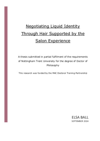 Ball, Elsa - Negotiating Liquid Identity Through Hair Supported by the Salon Experience.pdf - Published version Download (6MB) | Preview |