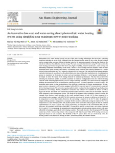 An innovative low-cost and water-saving direct photovoltaic water heating system using simplified near maximum power point tracking.