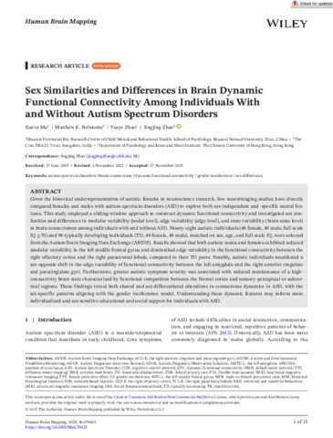 Sex similarities and differences in brain dynamic functional connectivity among individuals with and without autism spectrum disorders.