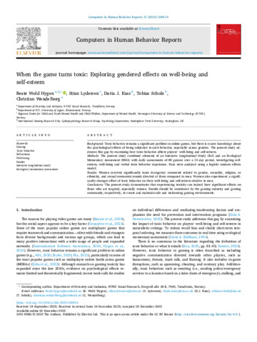 When the game turns toxic: exploring gendered effects on well-being and self-esteem.