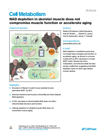 NAD depletion in skeletal muscle does not compromise muscle function or accelerate aging.