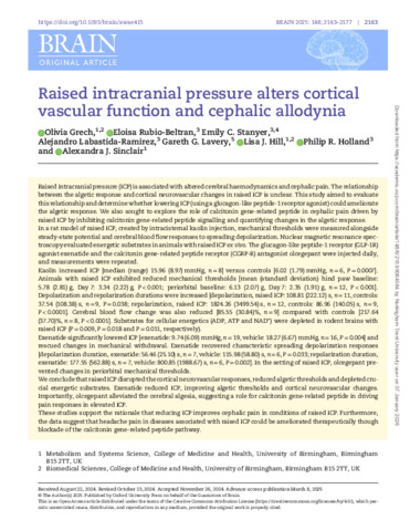 Raised intracranial pressure alters cortical vascular function and cephalic allodynia.