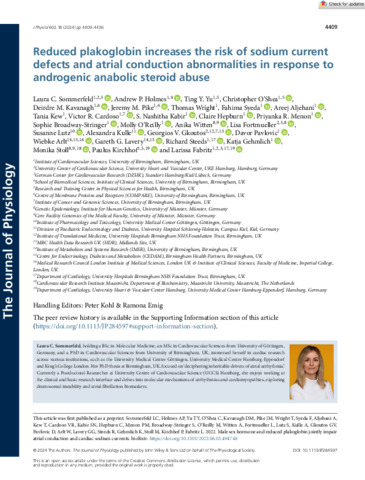 Reduced plakoglobin increases the risk of sodium current defects and atrial conduction abnormalities in response to androgenic anabolic steroid abuse.