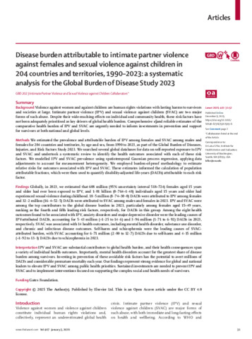 Disease burden attributable to intimate partner violence against females and sexual violence against children in 204 countries and territories, 1990–2023: a systematic analysis for the Global Burden of Disease Study 2023.