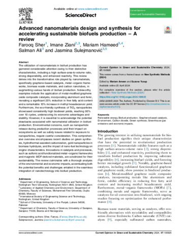 Advanced nanomaterials design and synthesis for accelerating sustainable biofuels production – a review.