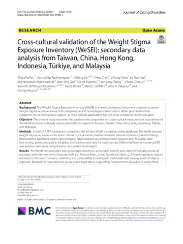 Cross-cultural validation of the Weight Stigma Exposure Inventory (WeSEI): secondary data analysis from Taiwan, China, Hong Kong, Indonesia, Türkiye, and Malaysia.