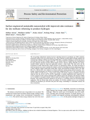 Surface engineered sustainable nanocatalyst with improved coke resistance for dry methane reforming to produce hydrogen.