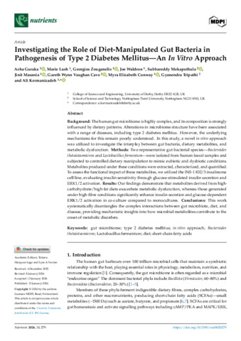Investigating the role of diet-manipulated gut bacteria in pathogenesis of type 2 diabetes mellitus—an in vitro approach.
