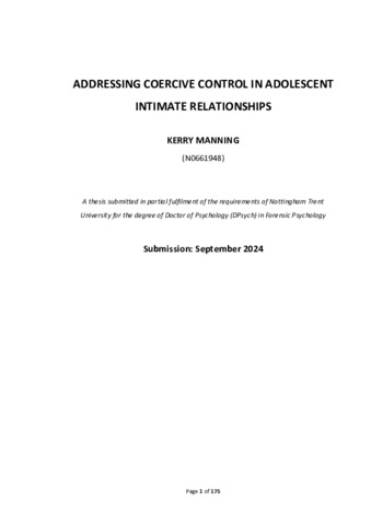 Manning, K, 2024. Addressing coercive control in adolescent intimate relationships. DPsych, Nottingham Trent University.