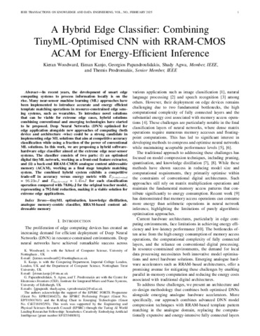 A hybrid edge classifier: combining tinyML-optimised CNN with RRAM-CMOS ACAM for energy-efficient inference.