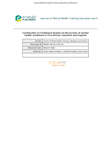 Contribution of traditional healers to the burden of mental health conditions in five African countries and England.