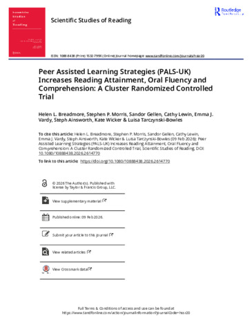 Peer Assisted Learning Strategies (PALS-UK) increases reading attainment, oral fluency and comprehension: a cluster randomized controlled trial.