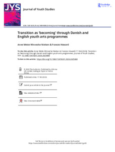 Transition as ‘becoming’ through Danish and English youth arts programmes.