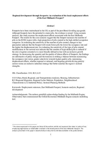 Regional development through freeports: an evaluation of the potential local employment effects of the East Midlands Freeport.