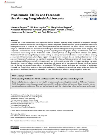 Problematic TikTok and Facebook use among Bangladeshi adolescents.