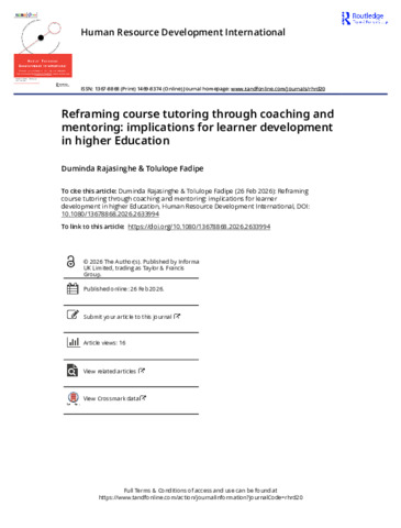 This perspective paper examines coaching and mentoring practices of course tutors within Higher Education Institutions (HEIs) in the UK. Course tutors’ roles vary across institutions under different titles, including personal tutors and academic mentors. HEIs recognise the value of these roles due to awareness of the multi-faceted pressures confronting learners. However, limited empirical research and professional practice highlight complexities in the design, development, and implementation of effective policies and strategies. Although coaching and mentoring are established as a learning and development initiative in commercial contexts, such practices in HEIs are limited. This imbalance is partly attributable to incentives associated with workplace coaching, compared to HEIs where such practices are embedded within academic workloads. Moreover, academics may see these practices as a burden, undertaken without formal training. Readiness to engage with coaching and mentoring is also uneven, among undergraduates compared to postgraduate learners. These challenges lead to a knowledge and practice gap that warrants critical reflection and collaborative inquiry involving multiple stakeholders. Drawing on theoretical links between coaching and learning, alongside our practices at Nottingham Business School, we offer insights into how coaching and mentoring-informed course tutoring enhance learner development, academic practice, and institutional approaches to personalised learning within HEIs. This perspective paper examines coaching and mentoring practices of course tutors within Higher Education Institutions (HEIs) in the UK. Course tutors’ roles vary across institutions under different titles, including personal tutors and academic mentors. HEIs recognise the value of these roles due to awareness of the multi-faceted pressures confronting learners. However, limited empirical research and professional practice highlight complexities in the design, development, and implementation of effective policies and strategies. Although coaching and mentoring are established as a learning and development initiative in commercial contexts, such practices in HEIs are limited. This imbalance is partly attributable to incentives associated with workplace coaching, compared to HEIs where such practices are embedded within academic workloads. Moreover, academics may see these practices as a burden, undertaken without formal training. Readiness to engage with coaching and mentoring is also uneven, among undergraduates compared to postgraduate learners. These challenges lead to a knowledge and practice gap that warrants critical reflection and collaborative inquiry involving multiple stakeholders. Drawing on theoretical links between coaching and learning, alongside our practices at Nottingham Business School, we offer insights into how coaching and mentoring-informed course tutoring enhance learner development, academic practice, and institutional approaches to personalised learning within HEIs.