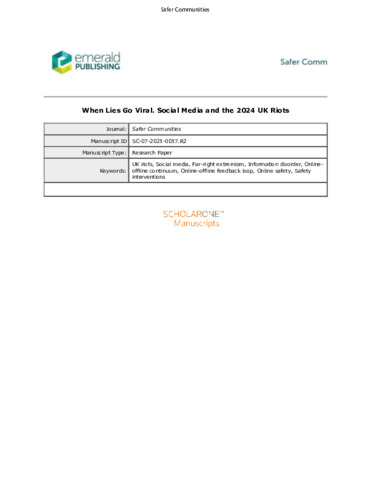 This article aims to examine how online disinformation fuelled the 2024 UK riots through an online‐offline feedback loop. In this cycle, digital falsehoods sparked offline violence and were re-circulated as evidence and validations for the actions.