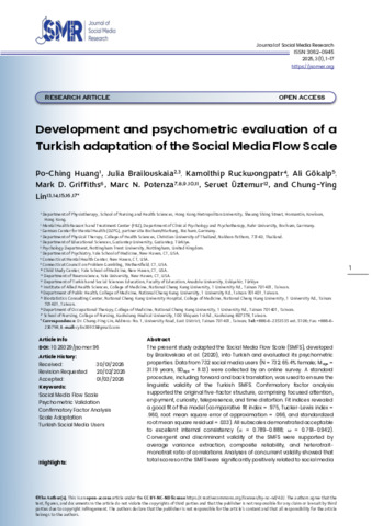 Development and psychometric evaluation of a Turkish adaptation of the Social Media Flow Scale.