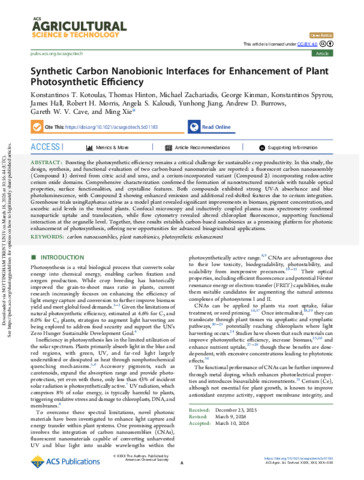 Synthetic carbon nanobionic interfaces for enhancement of plant photosynthetic efficiency.