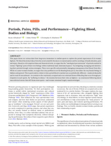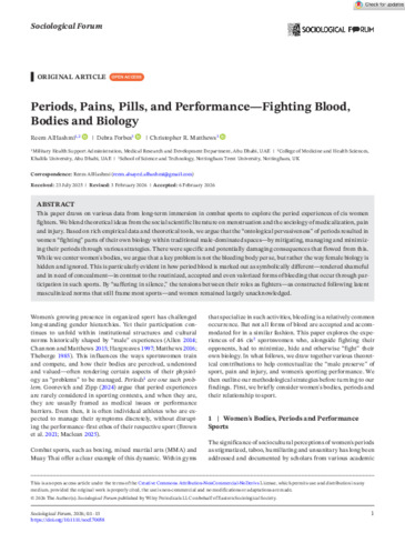 This paper draws on various data from long-term immersion in combat sports to explore the period experiences of cis women fighters. We blend theoretical ideas from the social scientific literature on menstruation and the sociology of medicalization, pain and injury. Based on rich empirical data and theoretical tools, we argue that the “ontological pervasiveness” of periods resulted in women “fighting” parts of their own biology within traditional male-dominated spaces—by mitigating, managing and minimizing their periods through various strategies. There were specific and potentially damaging consequences that flowed from this. While we center women's bodies, we argue that a key problem is not the bleeding body per se, but rather the way female biology is hidden and ignored. This is particularly evident in how period blood is marked out as symbolically different—rendered shameful and in need of concealment—in contrast to the routinized, accepted and even valorized forms of bleeding that occur through participation in such sports. By “suffering in silence,” the tensions between their roles as fighters—as constructed following latent masculinized norms that still frame most sports—and women remained largely unacknowledged.