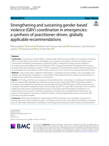 Strengthening and sustaining gender-based violence (GBV) coordination in emergencies: a synthesis of practitioner-driven, globally applicable recommendations.
