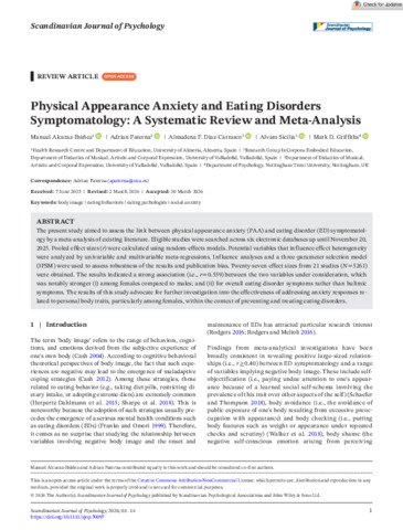 Physical appearance anxiety and eating disorders symptomatology: a systematic review and meta-analysis.
