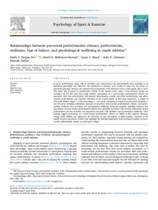 Relationships between perceived perfectionistic climate, perfectionism, resilience, fear of failure, and psychological wellbeing in youth athletes.