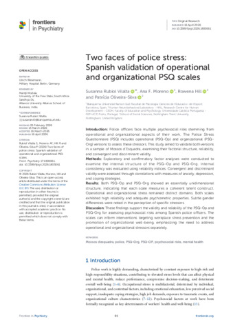 Two faces of police stress: Spanish validation of operational and organizational PSQ scales.