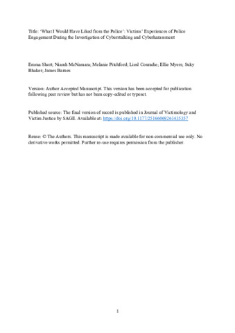 'What I would have liked from the police’: victims’ experiences of police engagement during the investigation of cyberstalking and cyberharassment.
