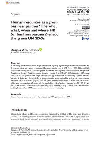 Human resources as a green business partner? The who, what, when and where HR (or business partners) enact the green UN SDGs.