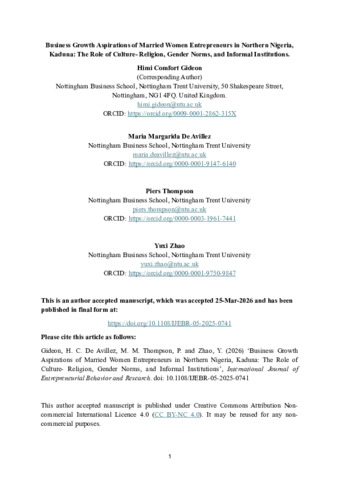 Business growth aspirations of married women entrepreneurs in Northern Nigeria, Kaduna: the role of culture – religion, gender norms and informal institutions.