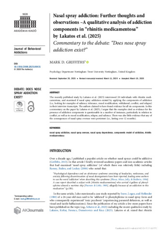 Nasal spray addiction: further thoughts and observations – a qualitative analysis of addiction components in “rhinitis medicamentosa” by Lakatos et al. (2025). Commentary to the debate: “Does nose spray addiction exist?”.