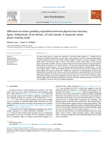 Differences in online gambling expenditure between players from Germany, Spain, Netherlands, Great Britain, US and Canada: a largescale online player tracking study.